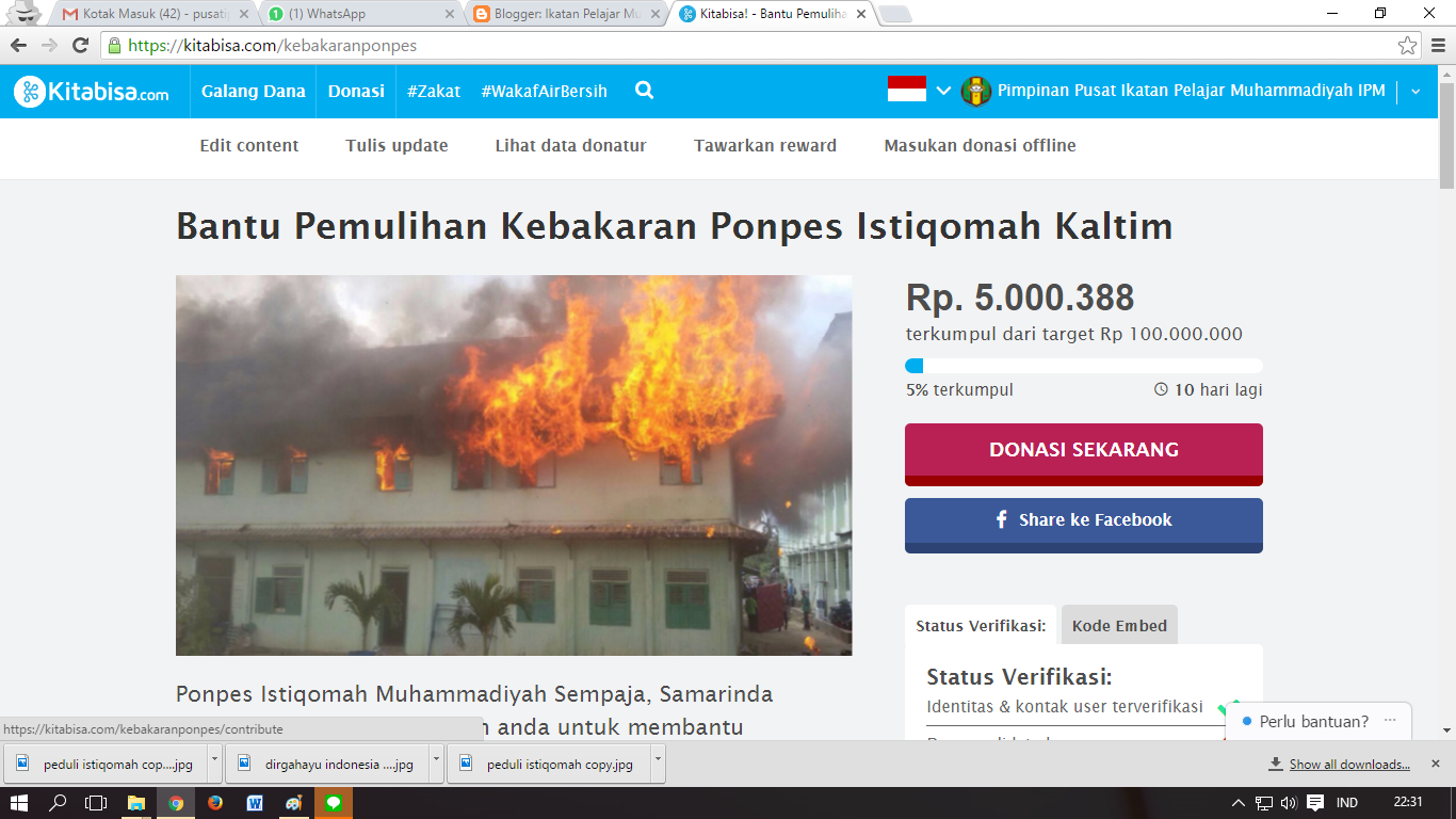 5. Uang yang ditransfer masuk ke rekening kitabisa.com kemudian setelah penggalangan dana selesai akan dialihkan ke rekening PP IPM